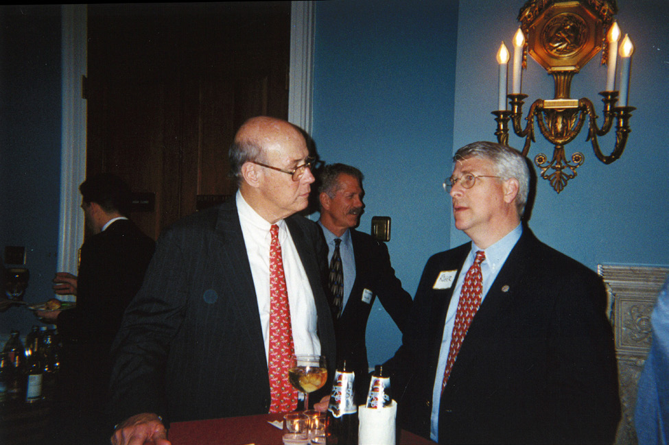 Penn Owen, a Mississippi rice farmer and founding board member of the USRPA visits with then Mississippi Congressman (and now Senator) Roger Wicker at a USRPA reception in the House Ag Committee hearing room in 1998.