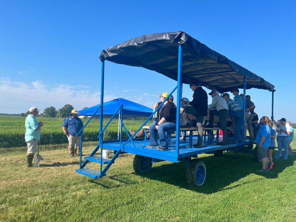 On Tuesday, the Missouri Rice Research & Merchandising Council hosted its first in-person Field Day since the start of the pandemic. Approximately 150 people gathered at the Missouri Rice Research Farm near Glennonville, MO for morning demonstrations, followed by a luncheon with guest speakers Jason Bean, Missouri state senator for the 25th Senatorial District, and Davin Althoff, Director of Marketing & Commodities for Missouri Farm Bureau. Field speakers and topics included: