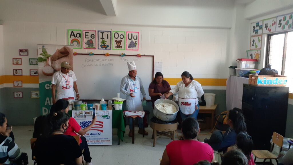 As part of USRPA's international program to promote U.S. rice around the world, USA Arroz visited Escuela Oficial Urbana Mixta No. 810 Jornada Matutina Zona 1 in Santa Catarina Pinula in Guatemala. They gave a demonstration about how to cook U.S. rice and prepared rice to serve the students.